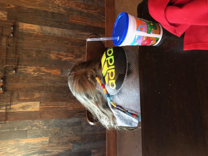 Maya sound asleep at the restaurant