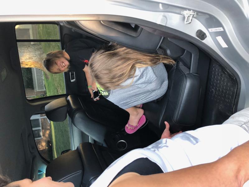 Maya still asleep after being transported to the car