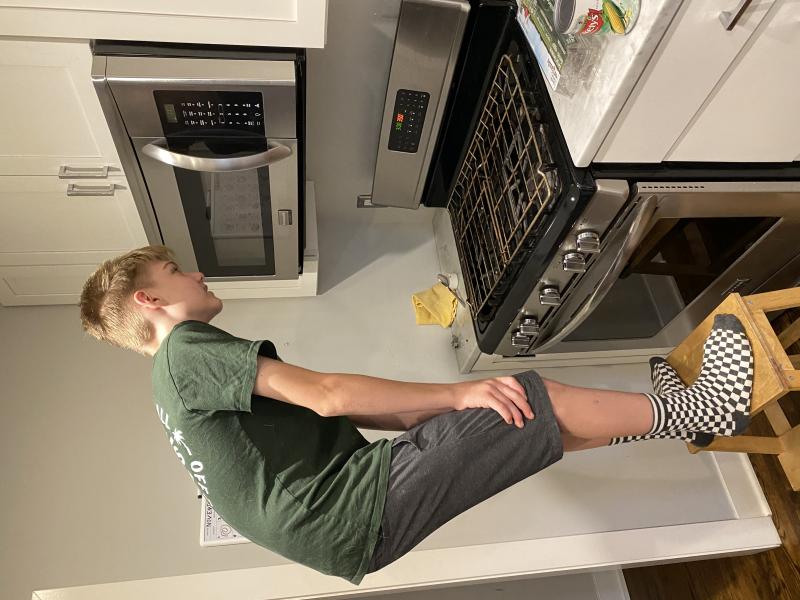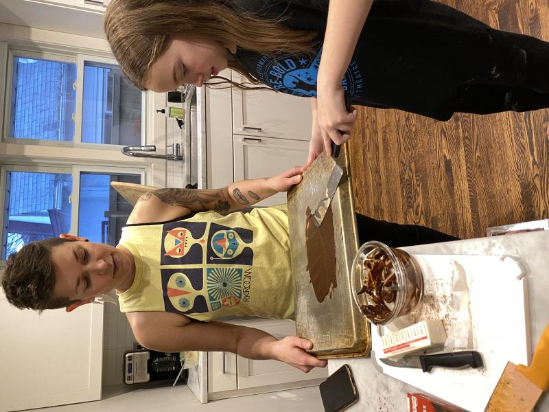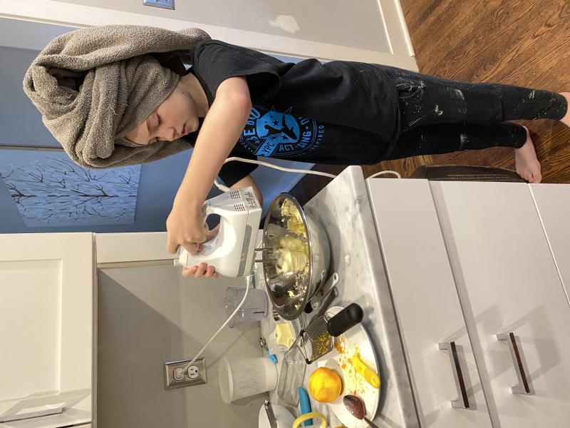 Nico making the corn casserole