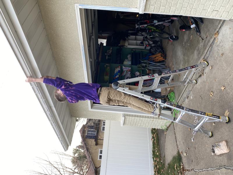 Nico hanging the Christmas lights