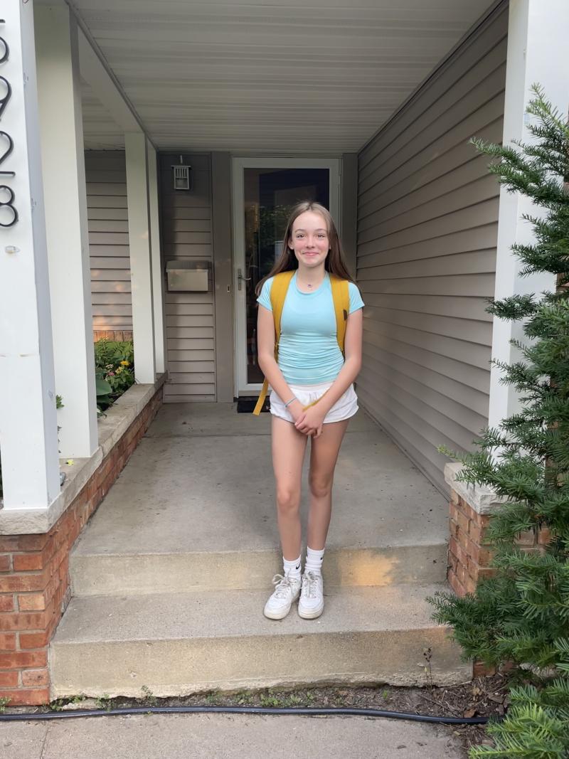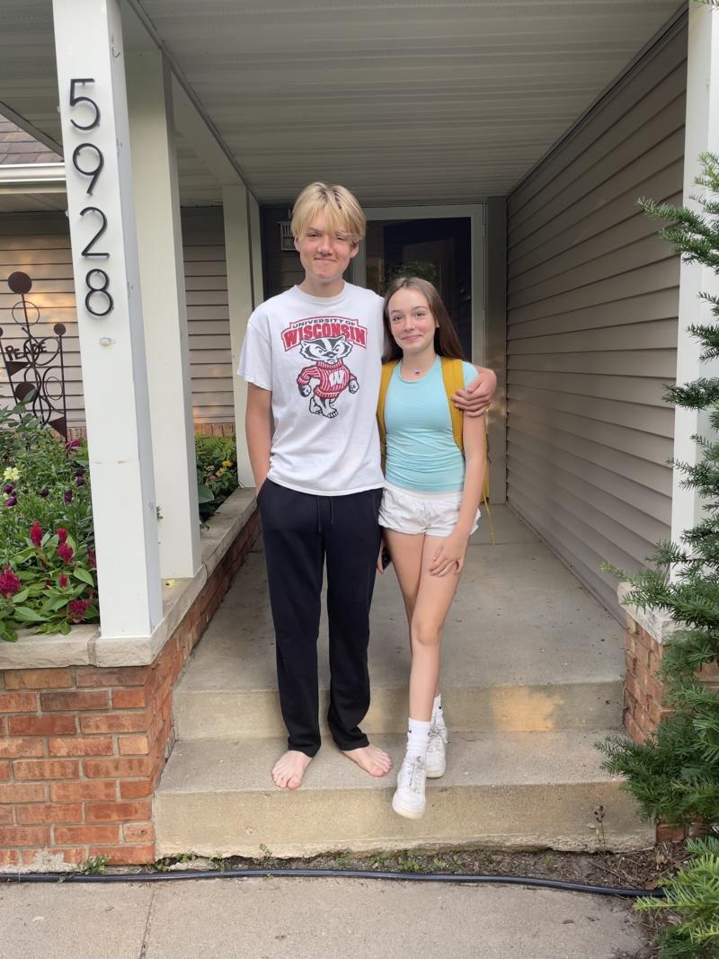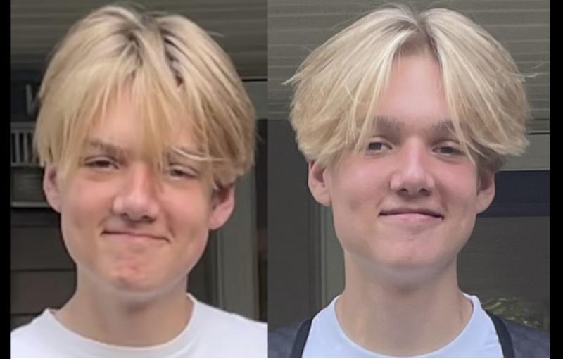 He wasn't super thrilled about that when I woke him up and that is the picture on the left. The picture on the right is the AFTER pic with a smile that doesn't say, I am not happy about this situation. The After being a shower and selecting a proper outfit. Much more confident smile as he exudes his too cool for school sophomore confidence.