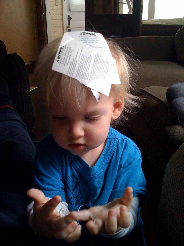 We've kept the bicycling helmet around this winter in an attempt to get Nico used to it - seems to be working, he grabs it on his own frequently.