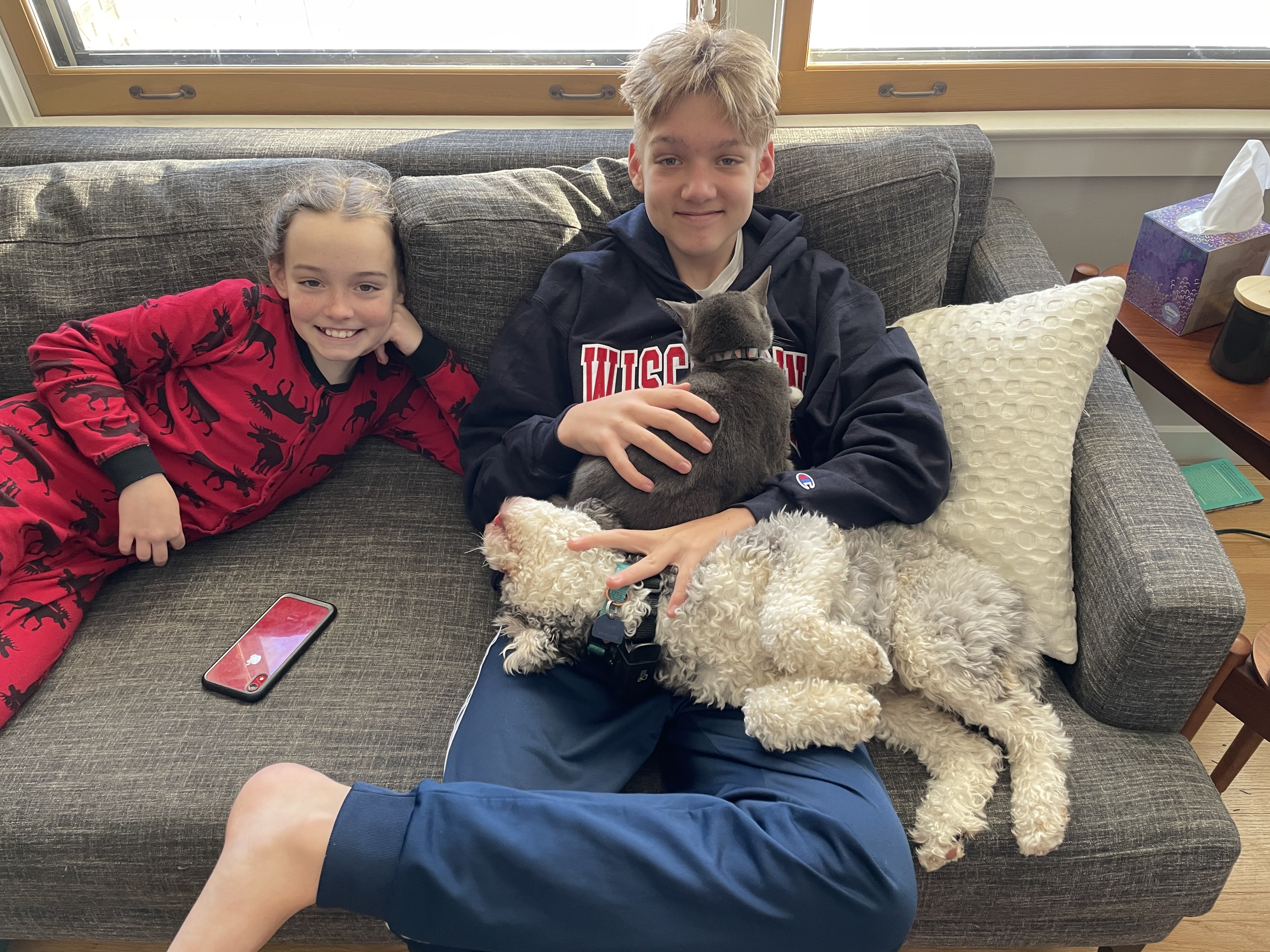 Maya and Lucie checking out Maya’s new sloth calendar