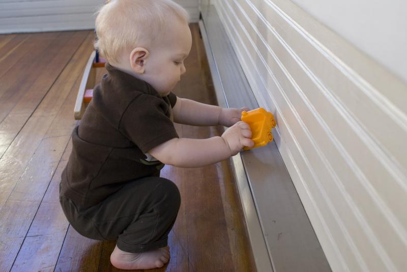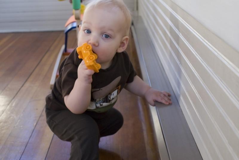 He pulled some dead leaves out of the rubber plant's pot, and spent 5 minutes or so really examining them. I eventually had to take them away when he started putting them in his mouth.