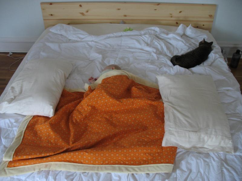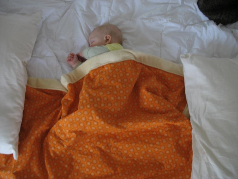 Mama woke up this morning and said, I've just got 10 minutes left to finish up the blanket. So a sewing she went and here's Nico taking a nap wrapped up in it!