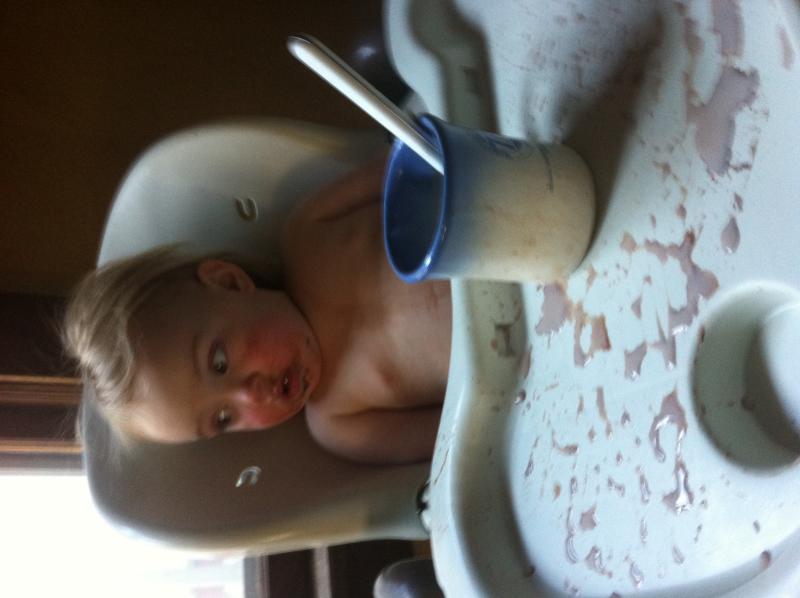 Of course after a bath they were both hungry, so I brought up fried rice to the bedroom and Nico ate up a bowl of it. Maya would have nothing to do with it. Nico was out at 7:35, snoring away. Maya still claimed hunger, so we went downstairs and she had some applesauce mixed with a squash HappyTot. She had a 3 hour nap at daycare and it ended at 3:45, so it's not too surprising she didn't fall asleep until 8:30 or so.
