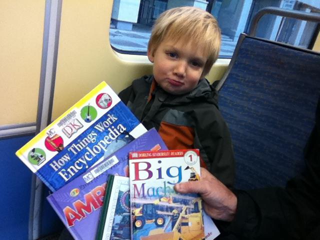 On the train with a haul of library books