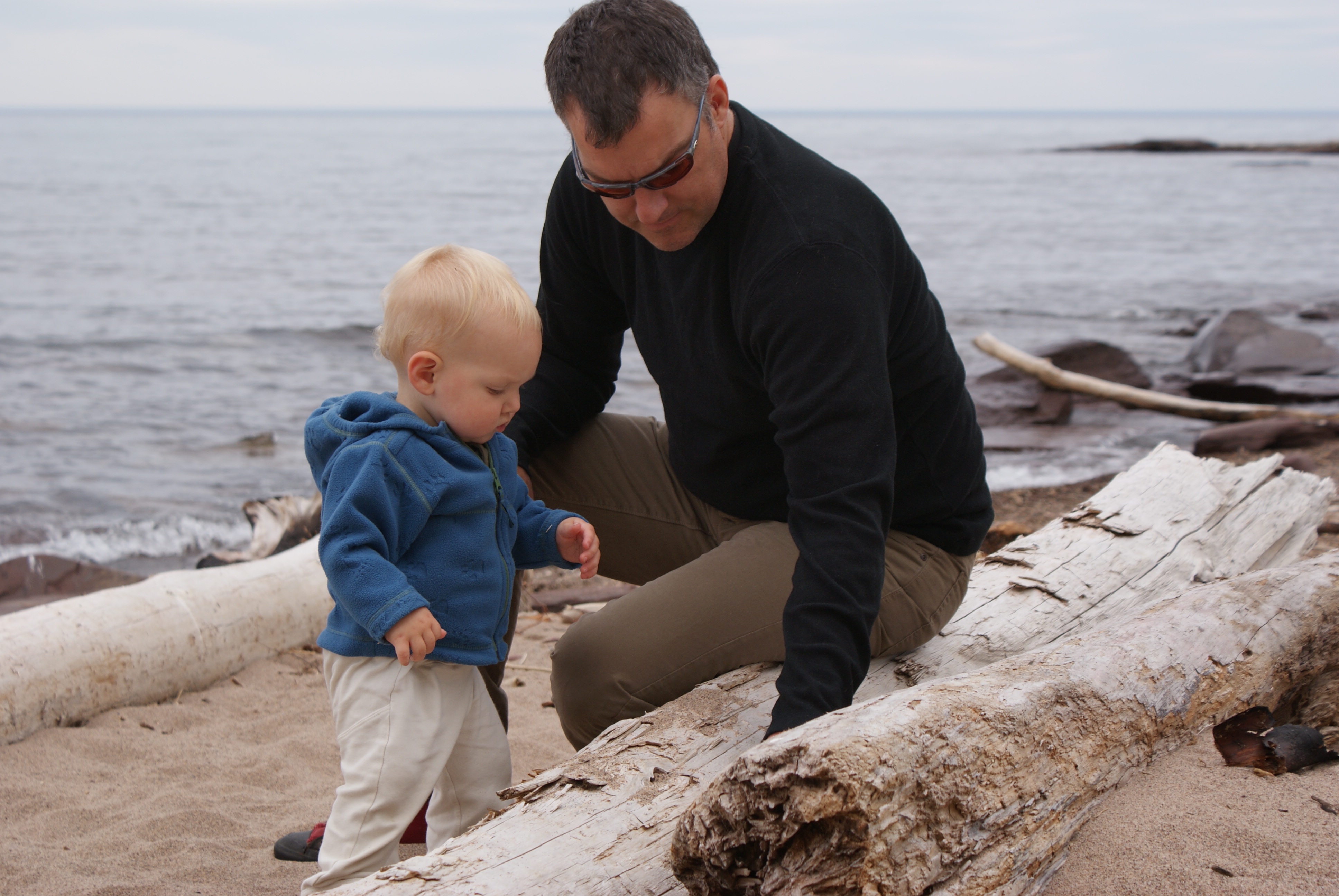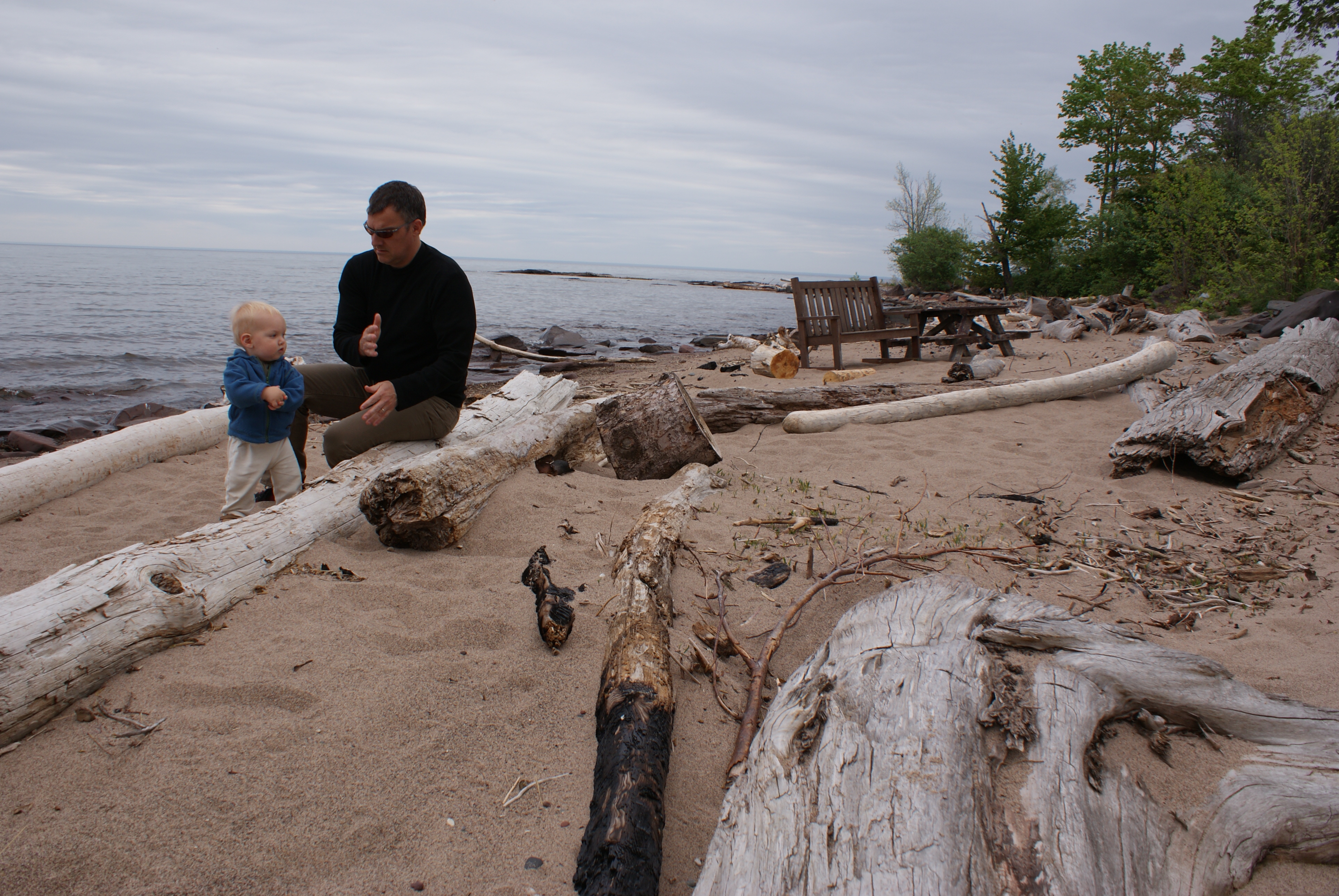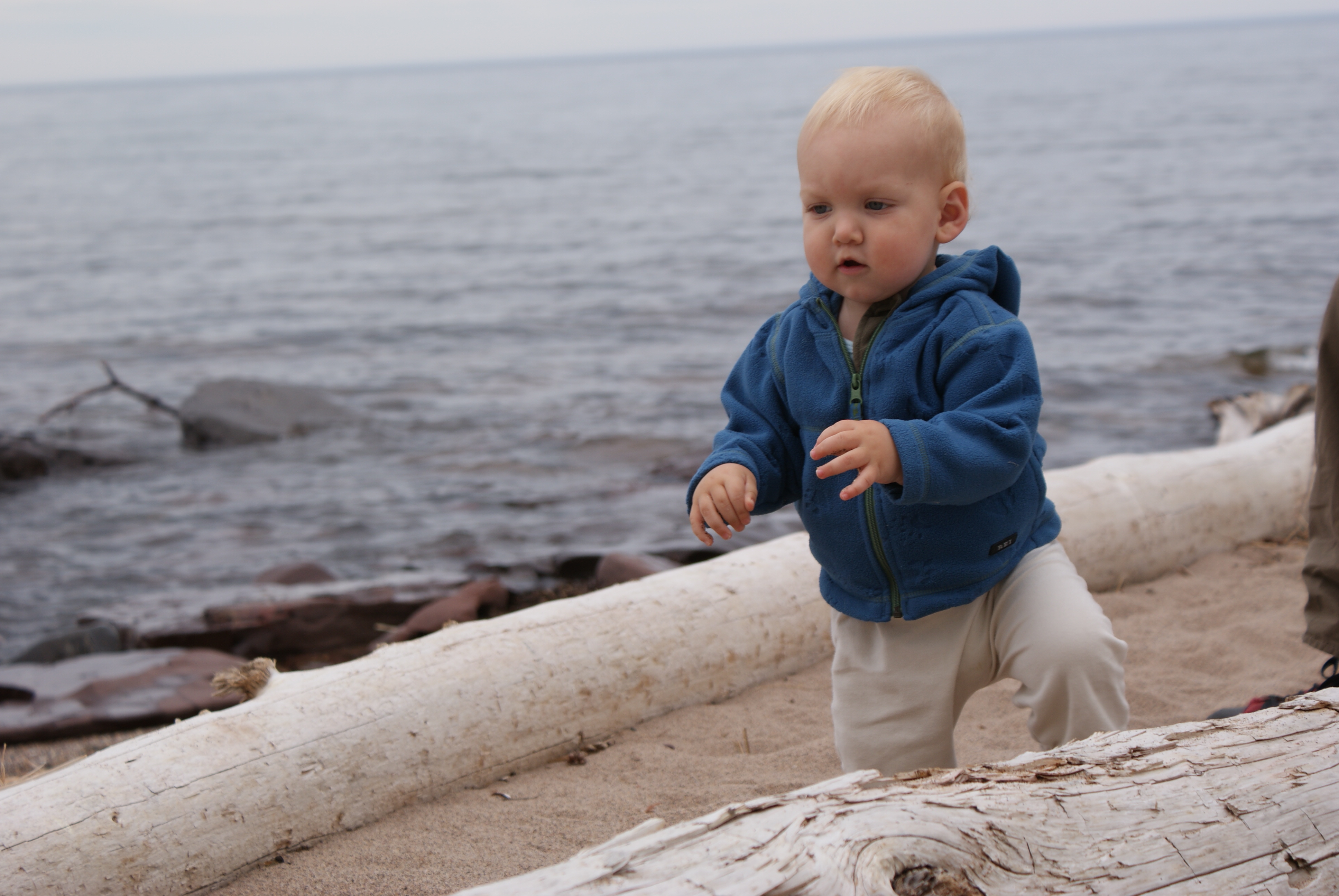 Here we are on the first day of our two week vacation. That's Lake Superior in the background. Nico was enthralled with the waves and wanted to run into the lake. At over 900 feet deep, probably not a good idea.
