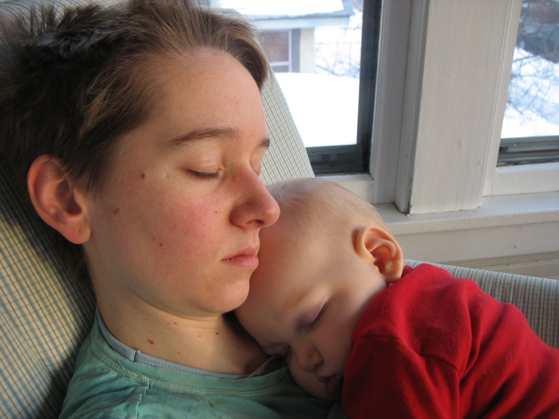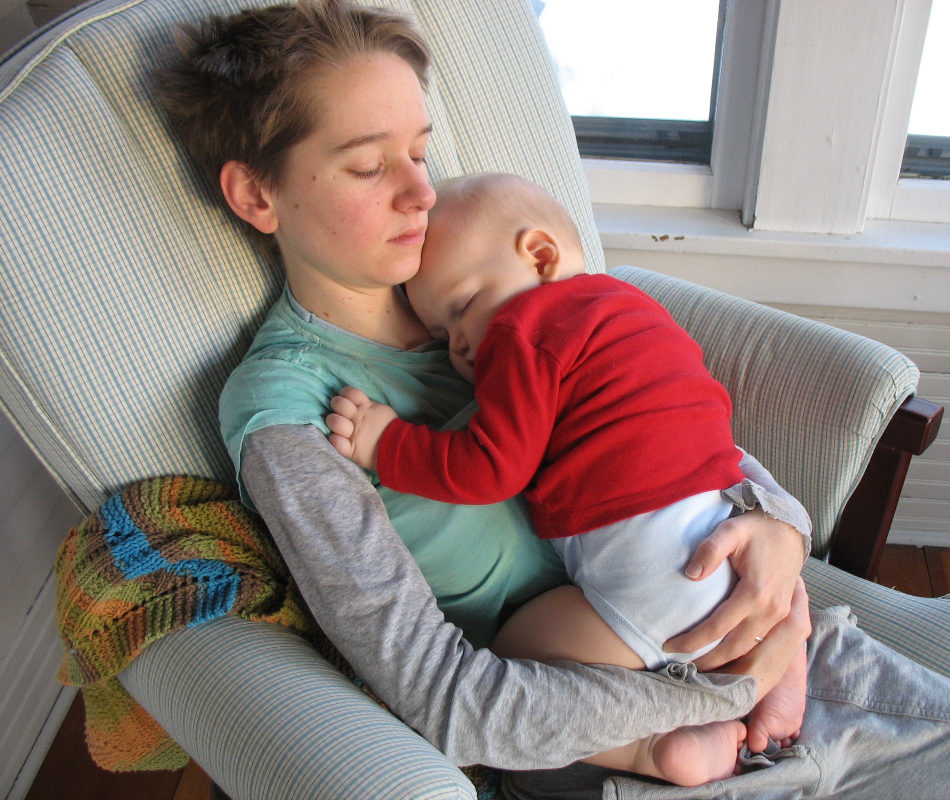 Mama and Nico napping in the rocking chair