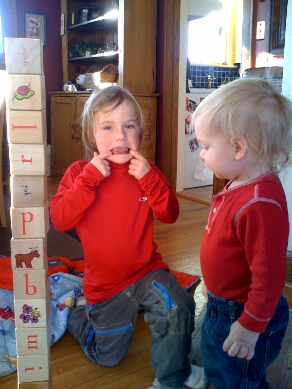 Anders makes a silly face, Nico isn't biting