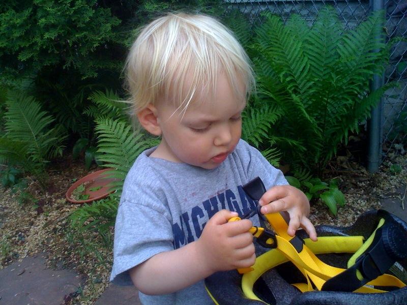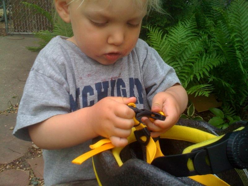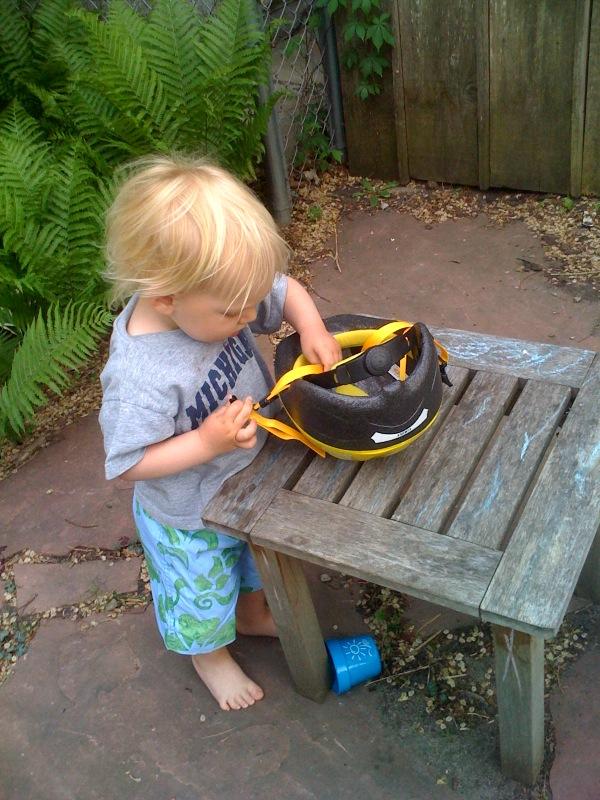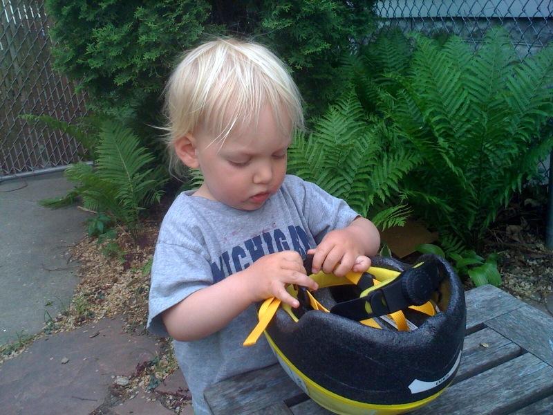 Helmet on before biking