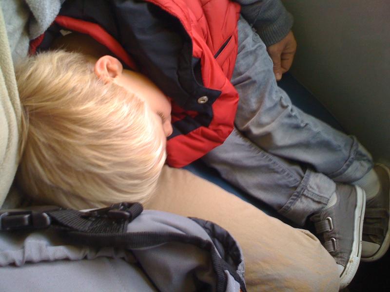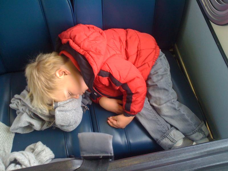 Nico sleeps on the bus