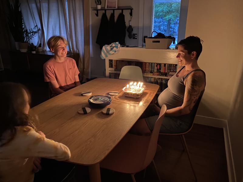 Comparing heights — 1 inch to go for Nico to catch up to uncle Paul