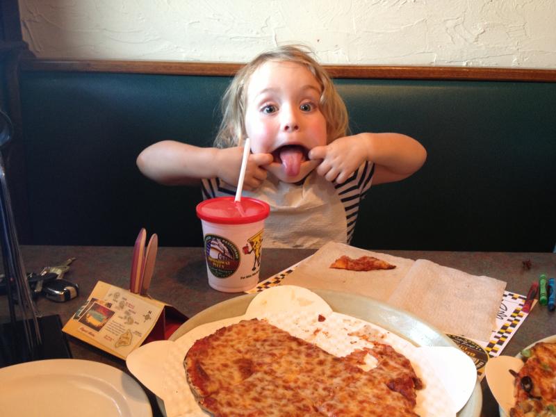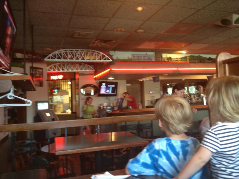 Watching the train at Broadway pizza