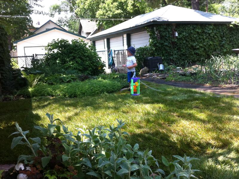 Nico waters the garden