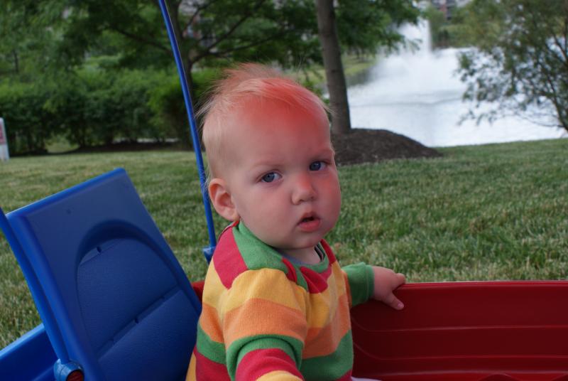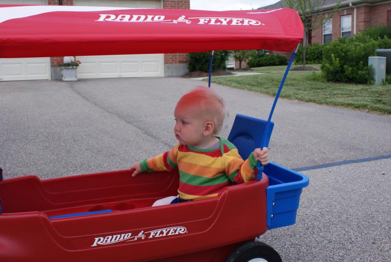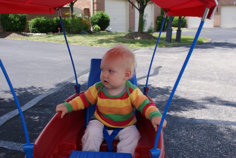 Nico looked away as Emily tried to check him out. We took the neighbor's wagon around the neighborhood and caught Emily at home. Grandma took Nico on a couple tours a day and he met A LOT of neighbors...