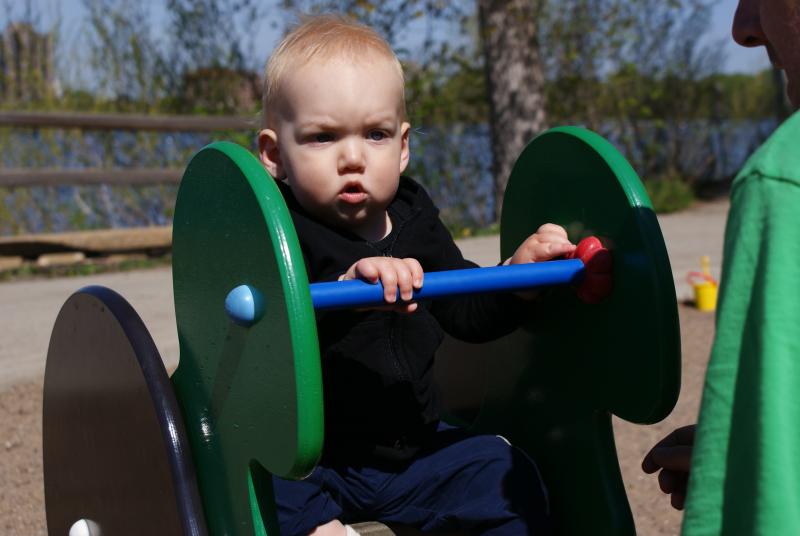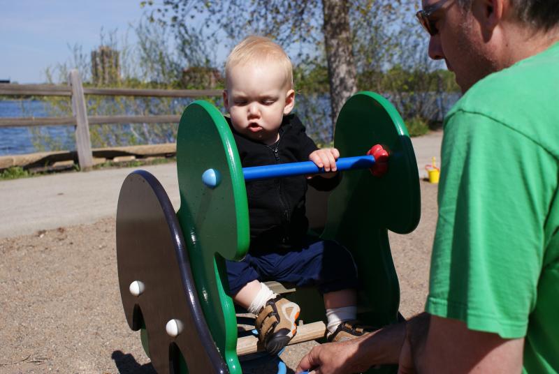 Aunt Josephine and Nico enjoying a swing on a spring day