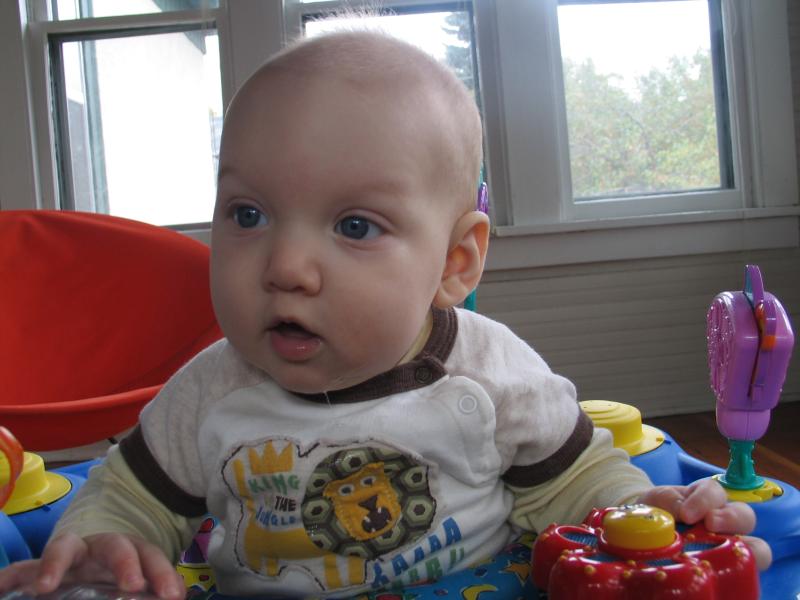 Here on Grandma Joan's last day of her Fall 2007 Visit, she took the time to snap some pictures of Nico sitting up and ExerSaucing...