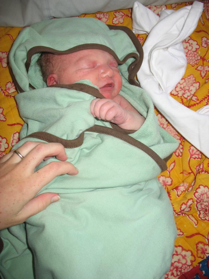 Our child caregiver said he was quite advanced as he is able to actually place his hand into his mouth. On purpose. With deliberate speed and accuracy. We'll just file that as Advanced Story Number 4 because I'm quite sure I remember several comments from the midwife during delivery about his 1) strength, 2) perfect reactions to the process and subsequent positioning and 3) we'll have to review the tapes and recordings of our hospital birthing process to ferret this one out.