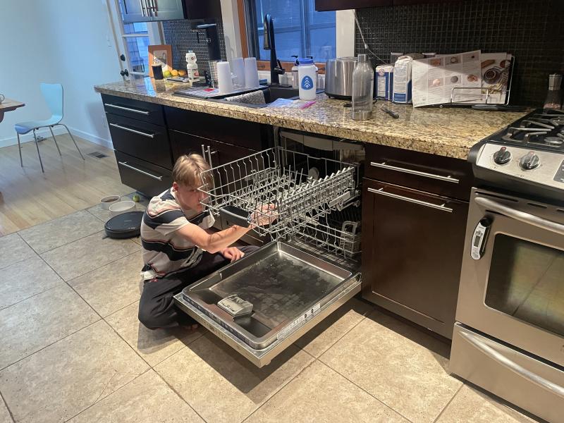 Nico fixes the dishwasher