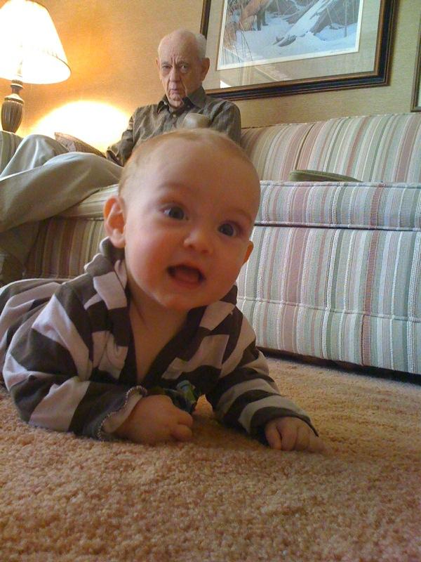 Climbing up to Grandpa Bob