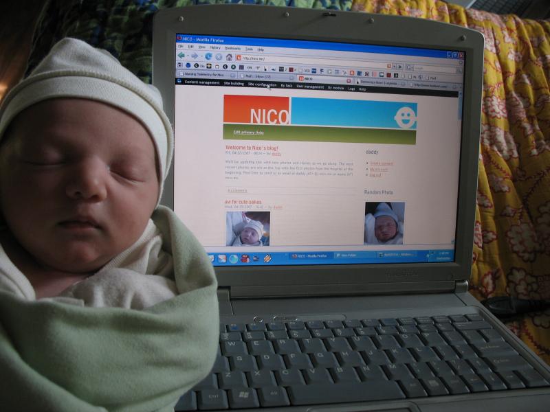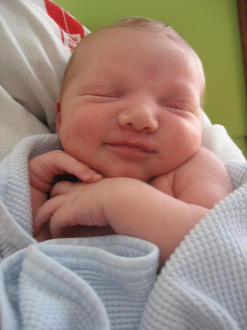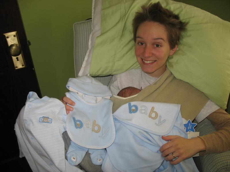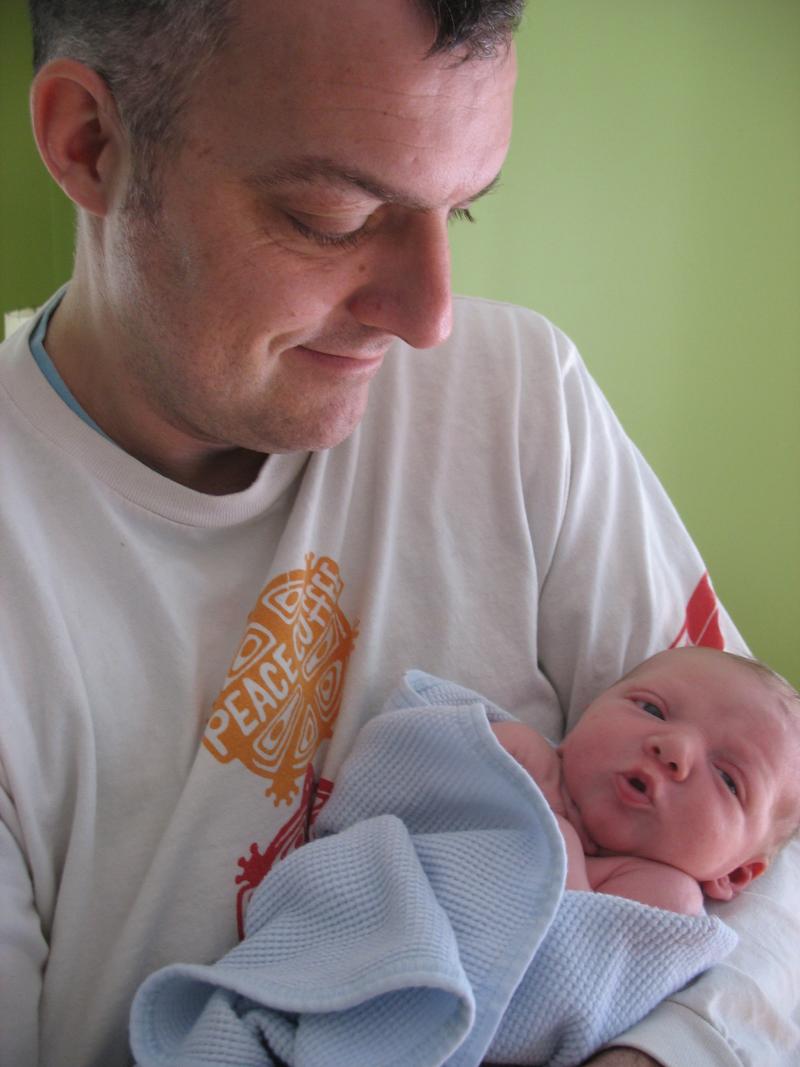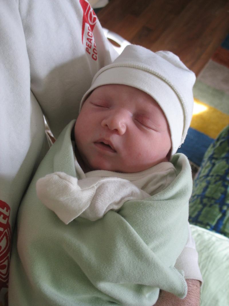 After a major spit-up incident, Nico was happy as a clam wrapped up in his Daddy's arms. Daddy looks quite content too...obviously, it wasn't him who'd been spewed upon only moments before!