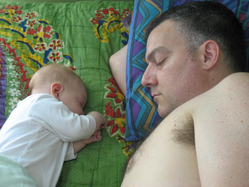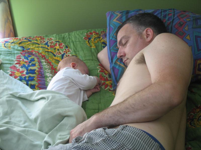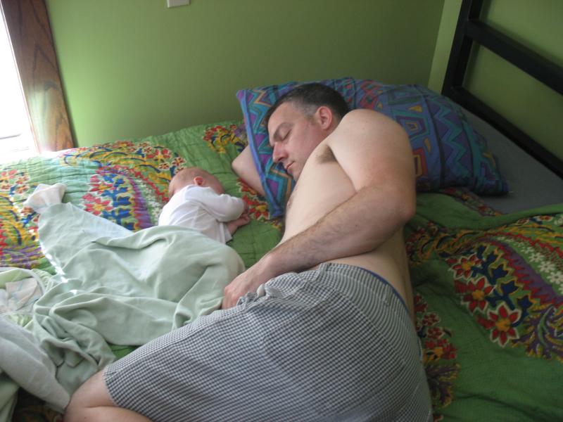 Nico and Daddy napping while Mama washes dishes. For real.