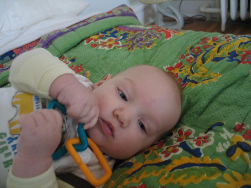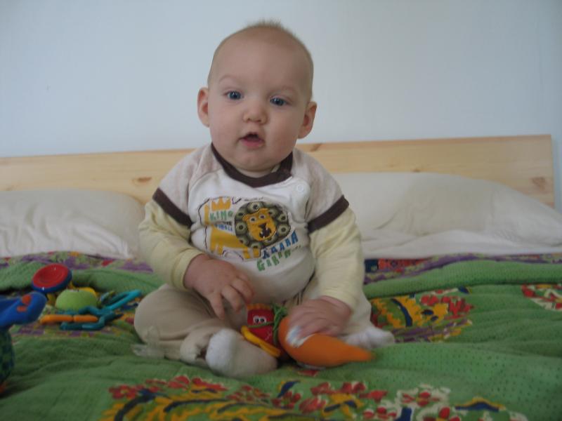 Here on Grandma Joan's last day of her Fall 2007 Visit, she took the time to snap some pictures of Nico sitting up and ExerSaucing...