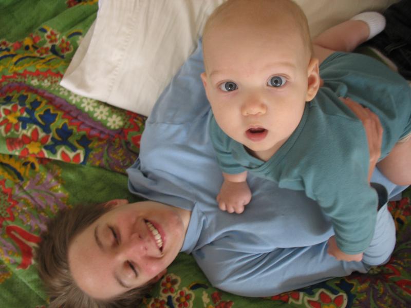 Here on Grandma Joan's last day of her Fall 2007 Visit, she took the time to snap some pictures of Nico sitting up and ExerSaucing...