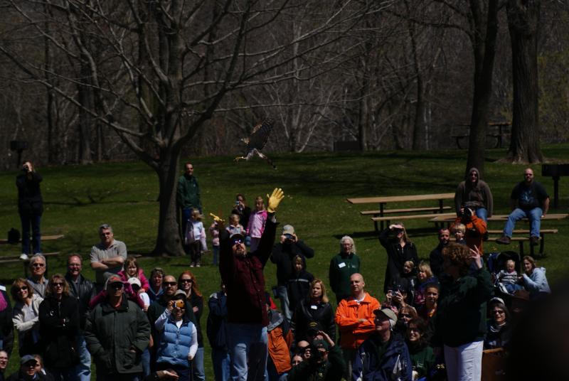 Female Red-tailed Hawk getting released