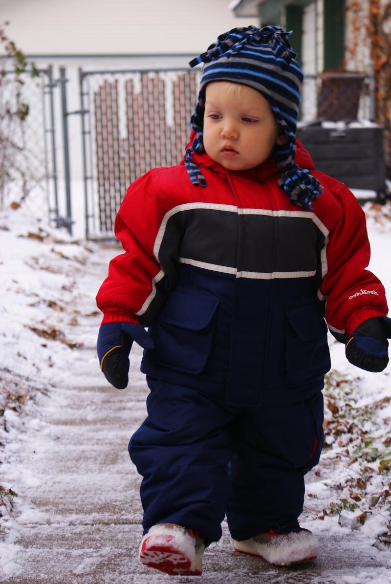 Nico enjoys his first walk in the Minnesota snow (well, enjoy might be a stretch)