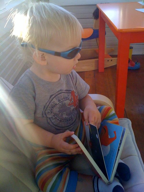 Nick using his reading glasses