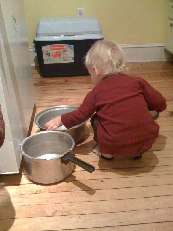 Nico hangs the pot