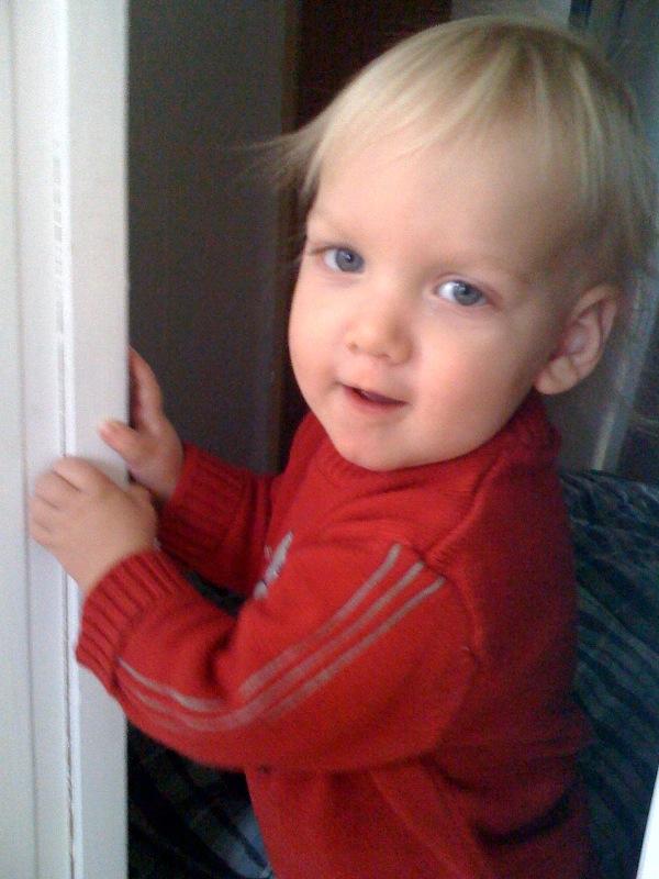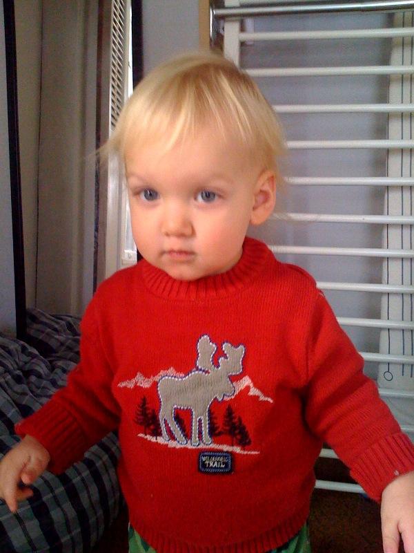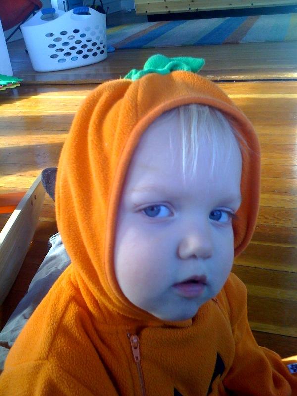 Nico wore this outfit ALL DAY. We took it off when we put his pajamas on at 7 p.m. tonight. He would not take it off, although he didn't have the hood on for any length of time except for this picture opportunity.