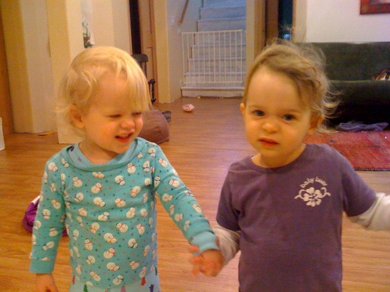 Awww fer cute, brother and sister holding hands...
