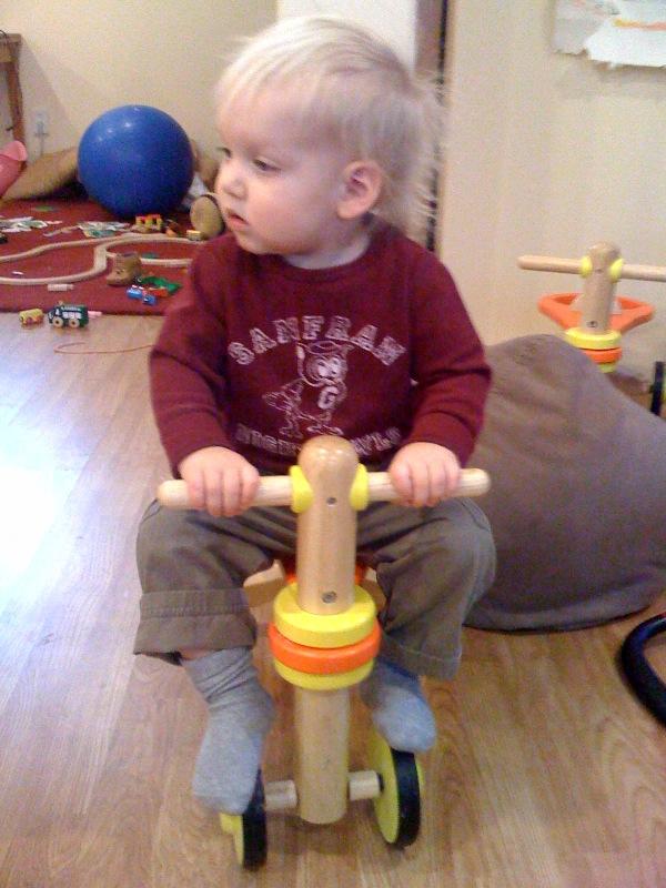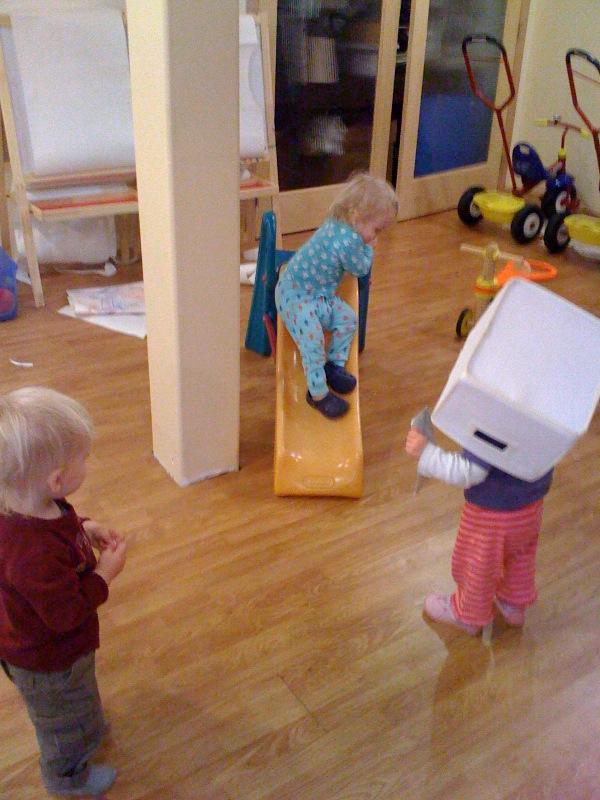Nico climbs to the top of the slide