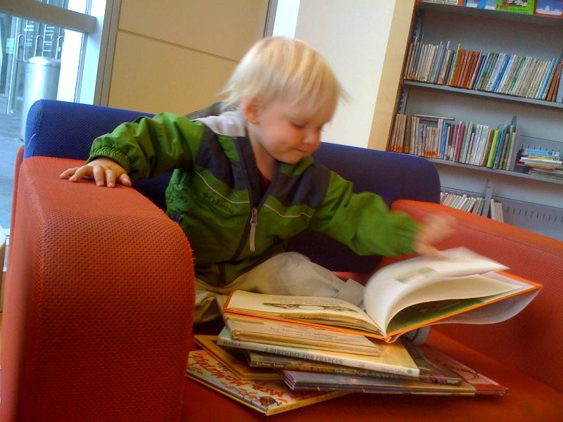 Big stack of books in a big chair
