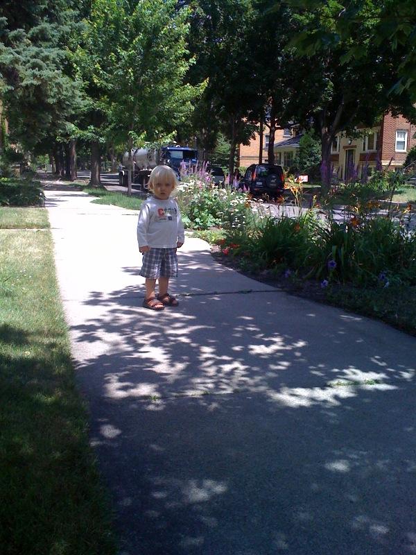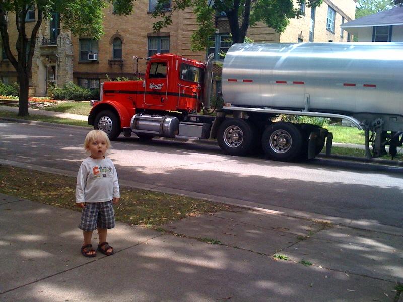 Looking at big trucks on our street