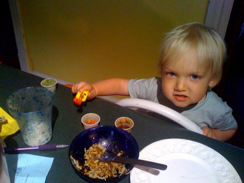No-nap Nico fell asleep at 5:00 p.m. yesterday so he missed our dinner from Gandhi Mahal.... Yummy!