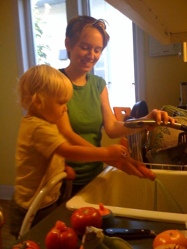 Nico washing the carrots he just harvested