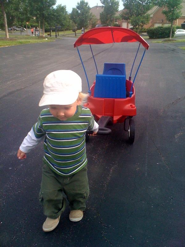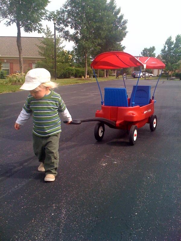 Nico pulls the wagon