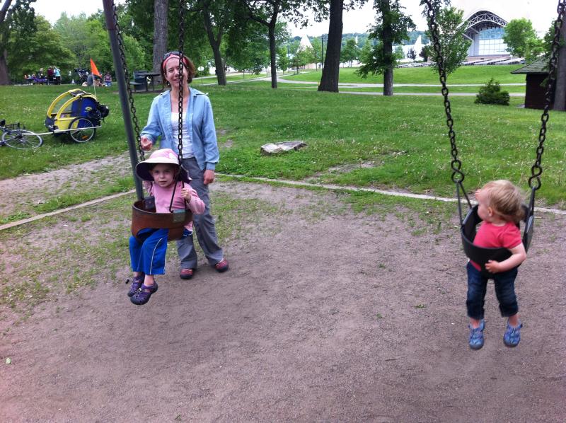 reading stories with a couple of other kids, snacking on some