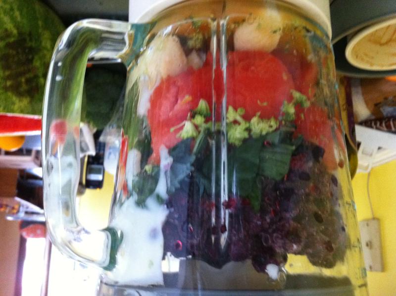 Blueberry Kale Broccoli Watermelon Banana OJ Smoothie