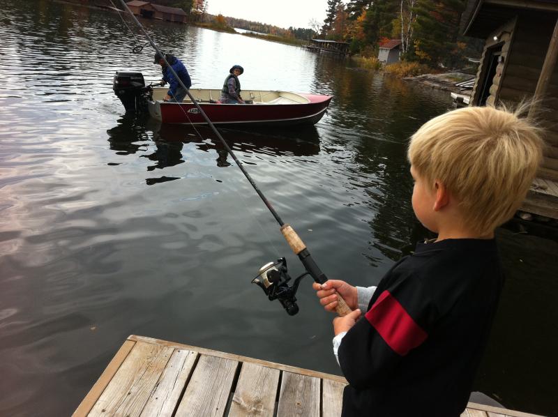 Nico fishing, Grandpa Dave & Grandma Jeanne head into town