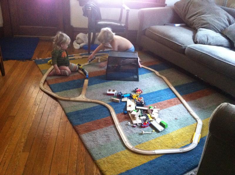 Good night last night, Nico and Maya were ready to roll at daycare when I picked 'em up at 5:05 p.m. They don't ever much like my fried rice, but a cobbled together dinner worked OK.