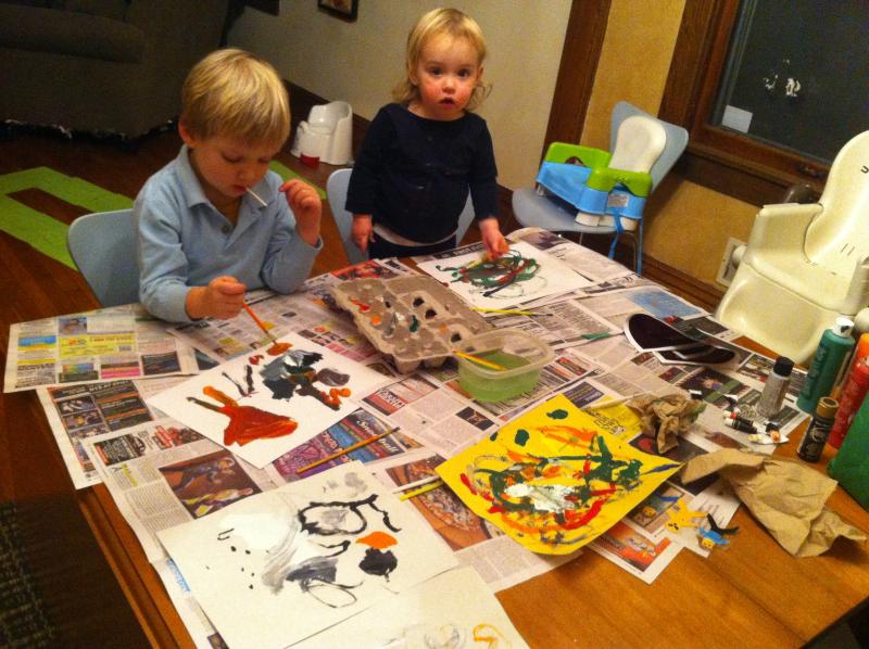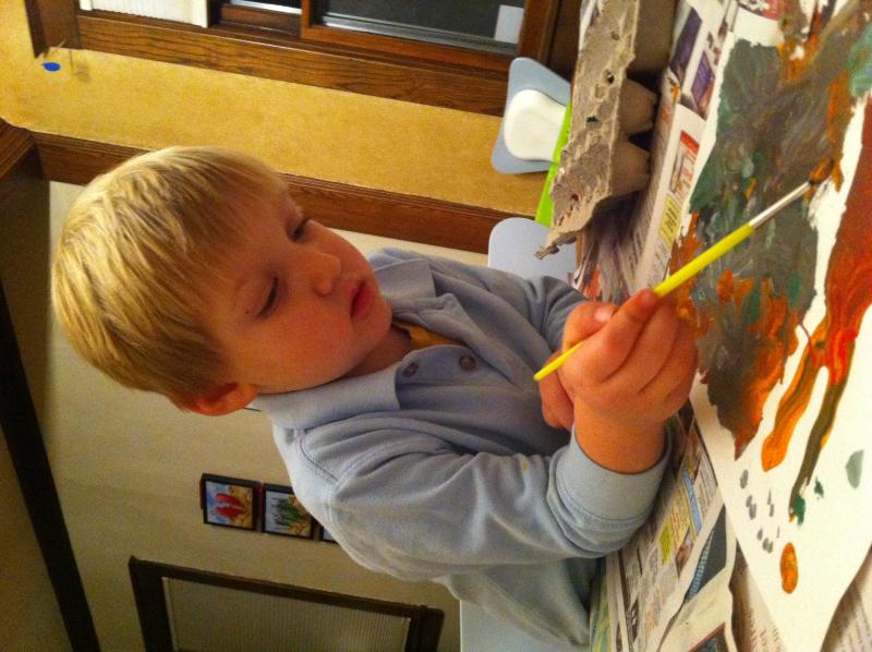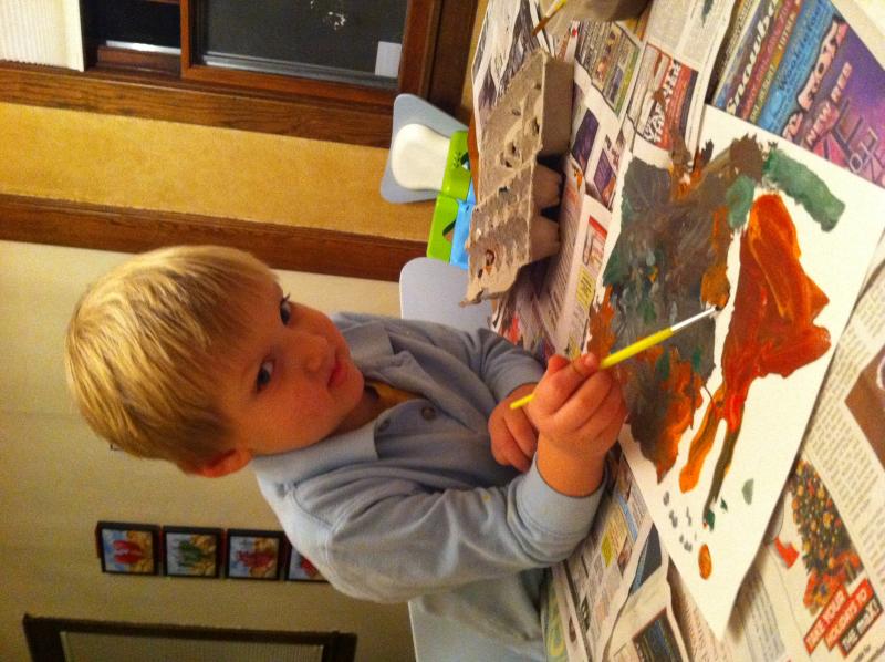 But, what I really wanted to write about was that Nico came up with an idea last night and mentioned it again this morning: Nico wants us to write a letter to three friends from daycare, Trekkie, Liam and Milo. He wants to tell them we live on Fremont Street and they can come over anytime to our house. If they have toys they want to bring to play with or anything they can just bring them. I mentioned to Nico that we had their phone numbers, so we could call and set up a playdate for the weekend, but Nico was adamant that we write a letter. But since we'd already painted and bathed, we decided to write the letter later.