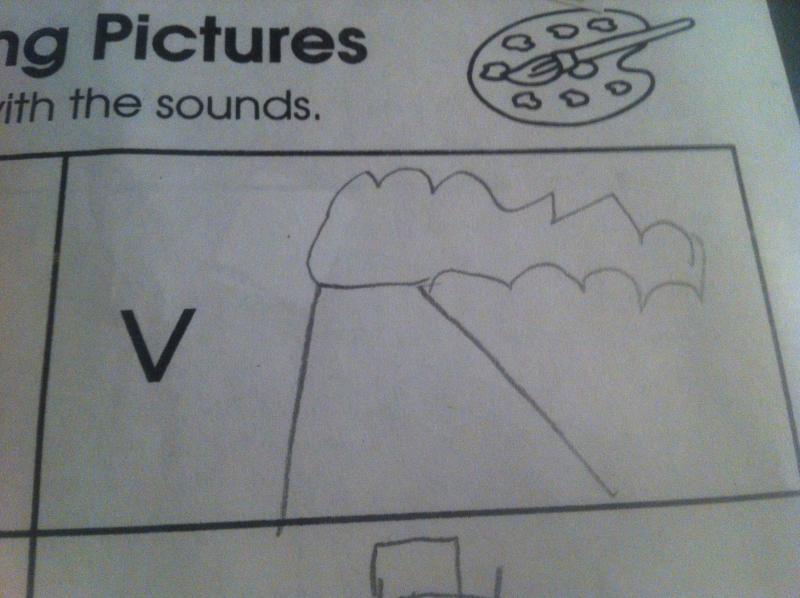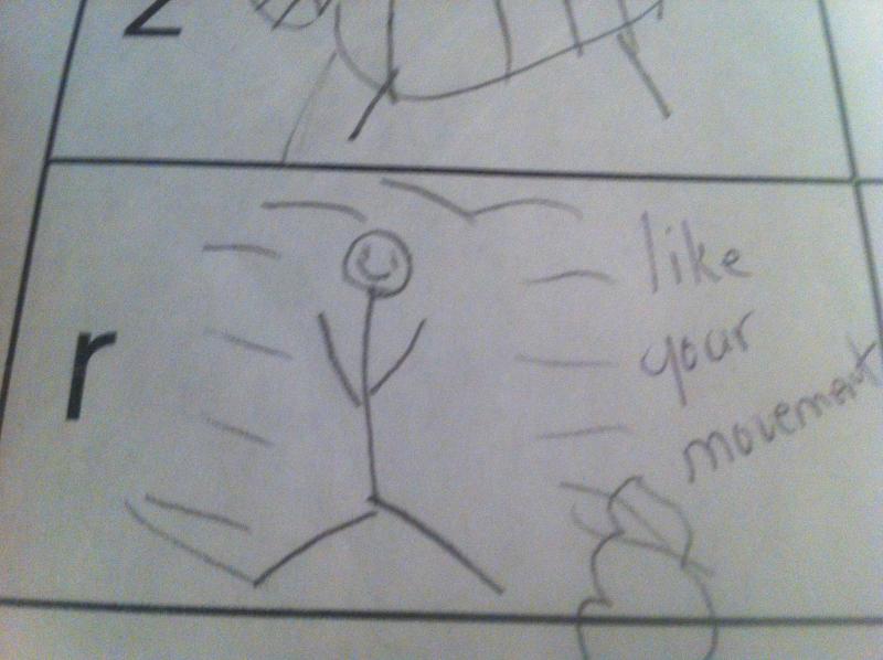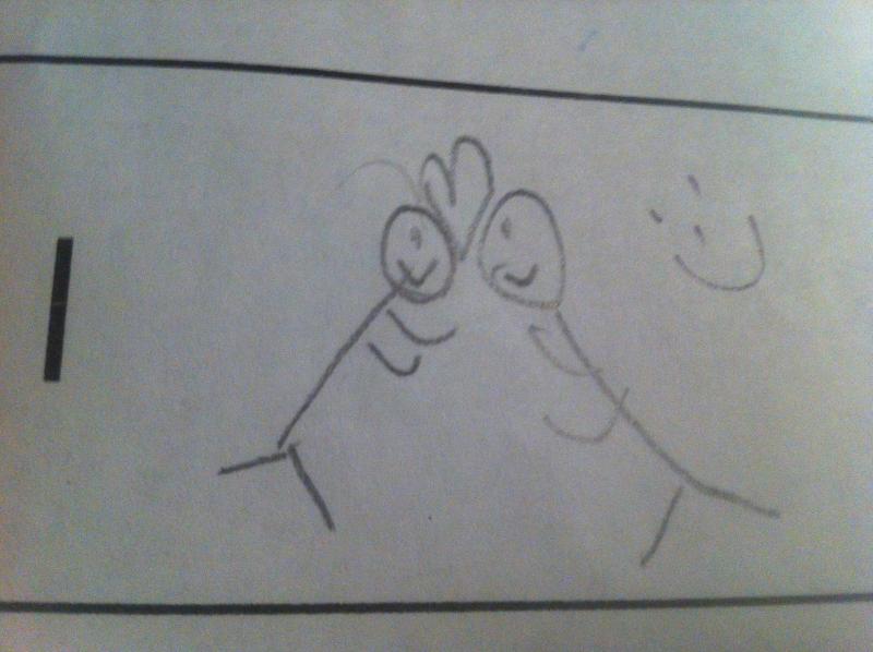 Letter L, Nico came up with this drawing for love. The smiley face is