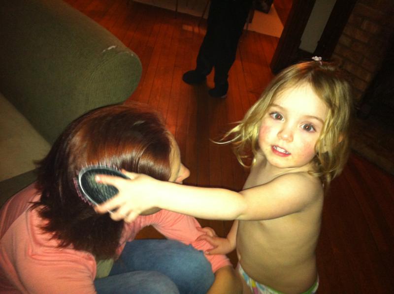 Maya brushes Deborah's hair