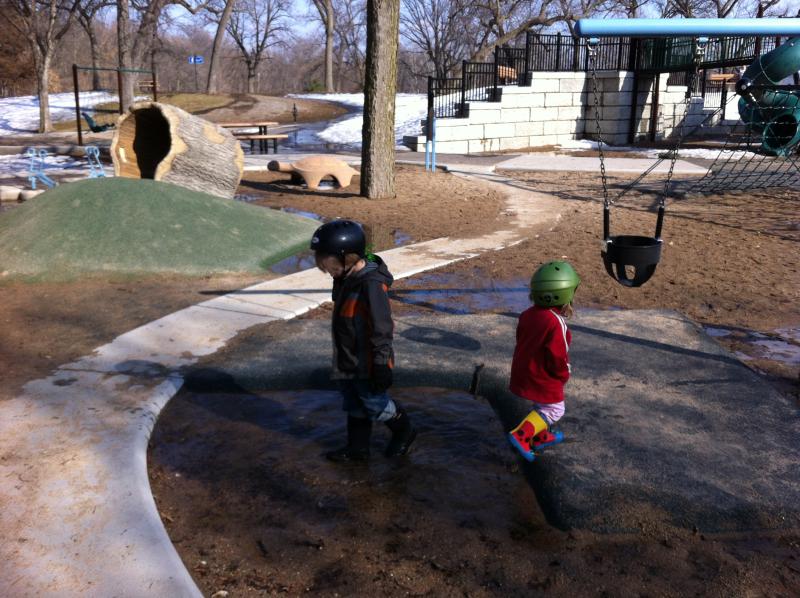 Helmet heads at Lake Harriet