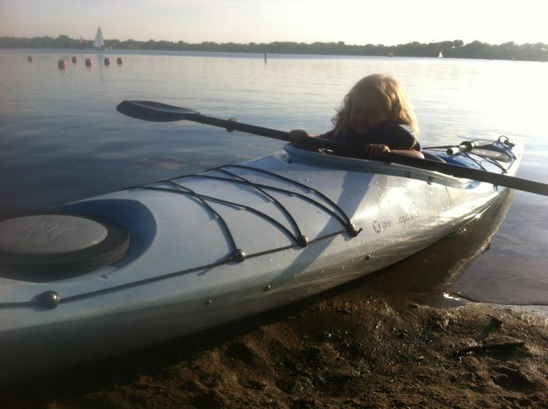 Maya gets ready for her first kayak outing